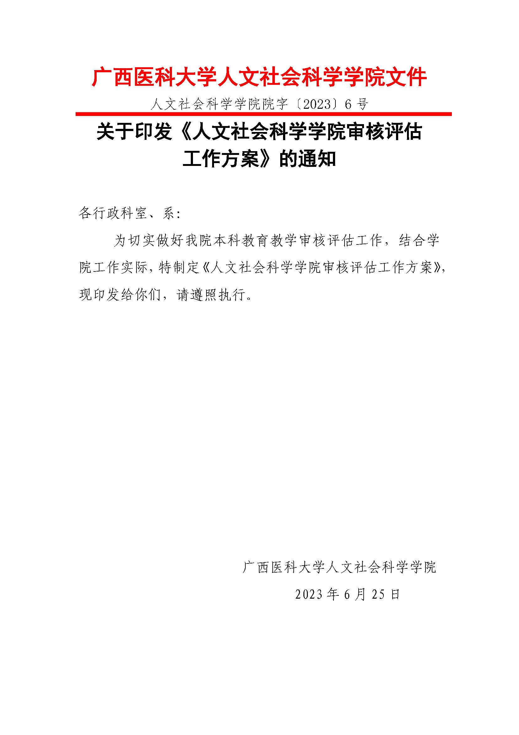 关于印发《海角视频 审核评估工作方案》的通知(海角视频 院字〔2023〕6号)