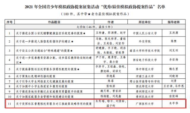 喜讯:海角视频 学生团队获评2021年全国青少年“优秀模拟政协提案作品”