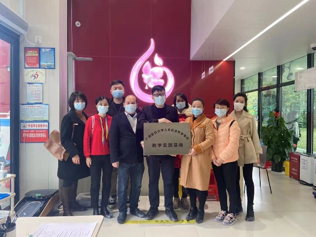 为营造“关爱、互助、和谐”的良好社会氛围,广泛宣传地贫知识,2022年2月26日上午,海角视频 联合南宁中心血站,依托医科大爱心捐血屋共同打造关爱地贫社会实践项目,挂牌海角视频 教学实践基地,携手托起爱的“地贫”线。