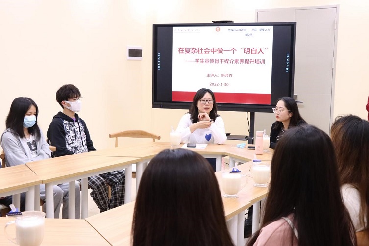 为提升学生的媒介素养,进一步做好网络思政教育工作,海角视频 于3月30日晚邀请校党委宣传部靳芳卉副部长为学生宣传骨干做媒介素养提升培训,学院辅导员唐澜、人文团委学生会宣传部成员和各班宣传委员参与活动。