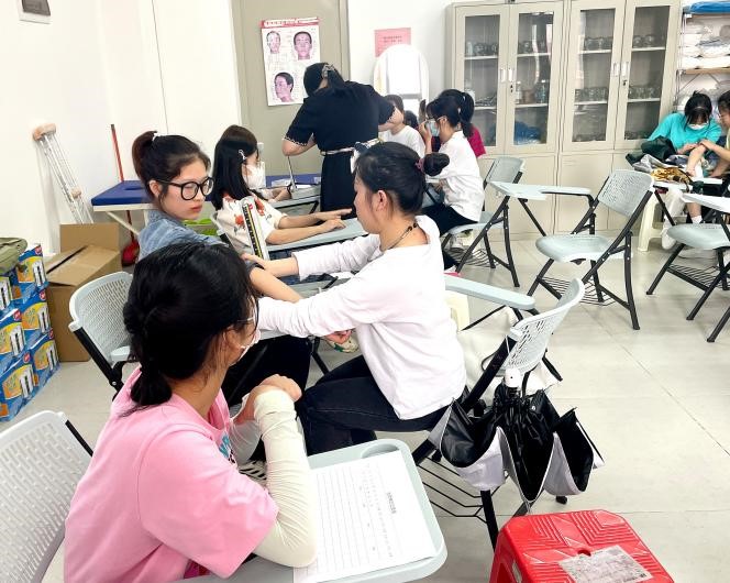 实践育人I 朋辈辅导员带领同学强化养老护理技能训练