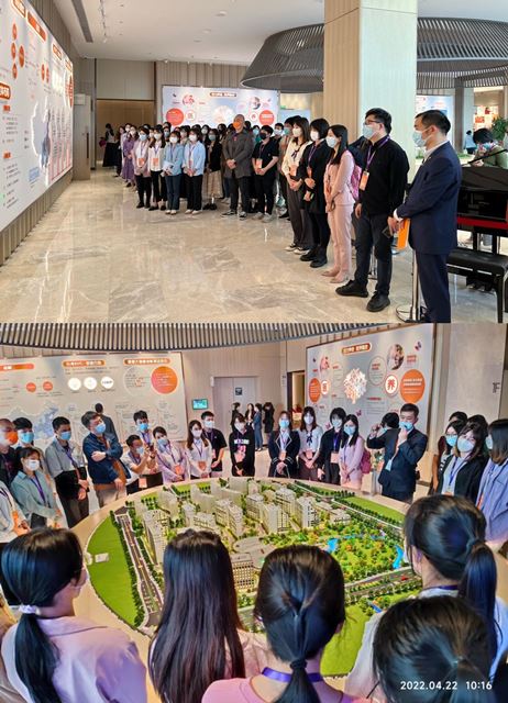 在人力资源凌东总监的带领下,海角视频 师生先参观了桂园体验馆,对泰康大健康产业生态体系建设、园区布局、服务设施等有了进一步了解。作为泰康在广西首个大规模、全功能、国际标准的高品质医养社区,桂园社区专业、科学、细致的管理服务令人印象深刻。