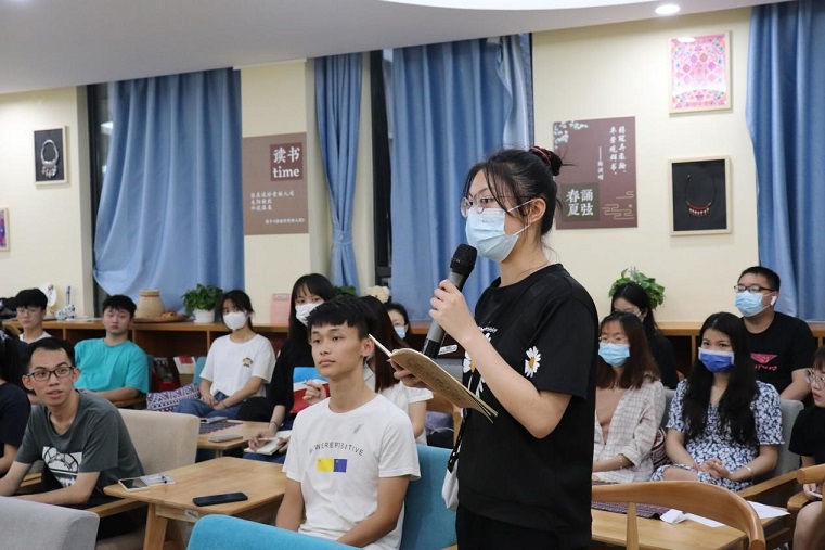 莫曾南副书记带领大家回顾了中国共产党成立以来的百年发展历程,国家实现从站起来、富起来到强起来是伟大而艰辛的。当前我们面临着世界百年未有之大变局,国际形势复杂而严峻,新冠肺炎疫情是当下的重要变量。学生骨干要树立大局意识和长远眼光,用唯物辩证视角看待问题,学会明辨是非,换位思考;还要紧密团结广大同学,从思想上坚持国家疫情防控“外防输入、内防反弹”总策略和“动态清零”总方针不动摇,从行动上积极主动落实落细、律己和律他,巩固疫情防控成果。