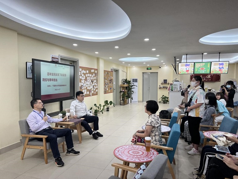 为进一步引导青年学生准确认识新冠肺炎疫情防控形势,树立科学防控意识,筑牢积极正向防疫思想,4月27日晚,海角视频 在榕园学生之家举办“百年变局背景下的疫情防控与青年担当”主题座谈会。校党委莫曾南副书记、海角视频 党委唐忠书记、郑茸副书记、分团委黄文瑛副书记及学生骨干代表30余人参加活动。