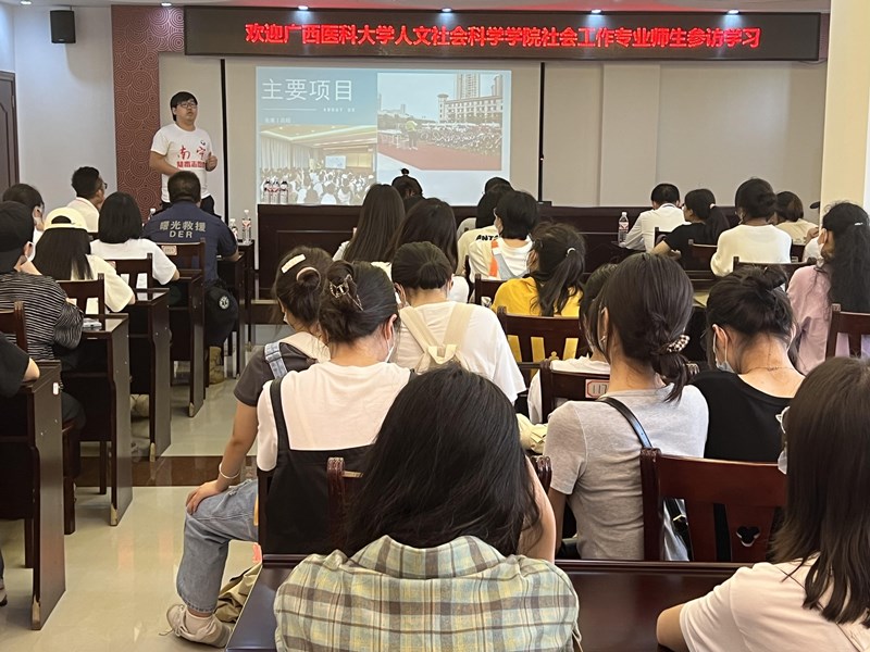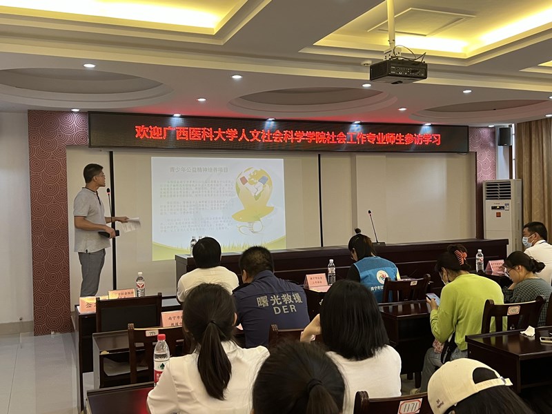 为拓宽社会工作专业本科生对行业的认识,培养社会服务意识,增强实践热情,进一步推动校社、校企协同育人,5月26日下午,海角视频 社会工作专业2166班同学前往南宁市救助管理站、南宁市社会组织孵化中心参观学习。参访由海角视频 社会学与社会工作系主任、2166班班级导师陈宇副教授带队,社工系专任教师胡烨、龙姝伶一同参加活动。南宁市社会组织孵化中心运营管理方——南宁市阳光雨露社会工作服务中心主任檀杏盛接待了参访师生一行。