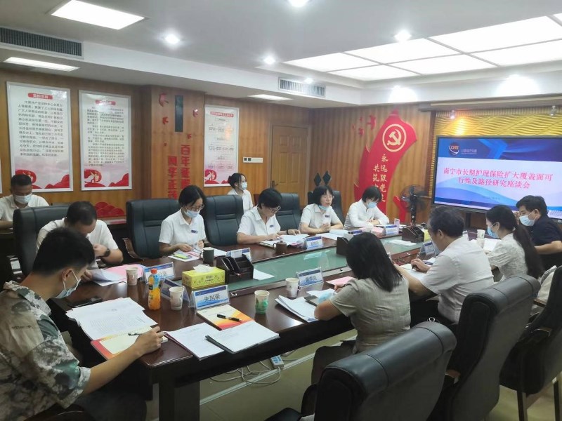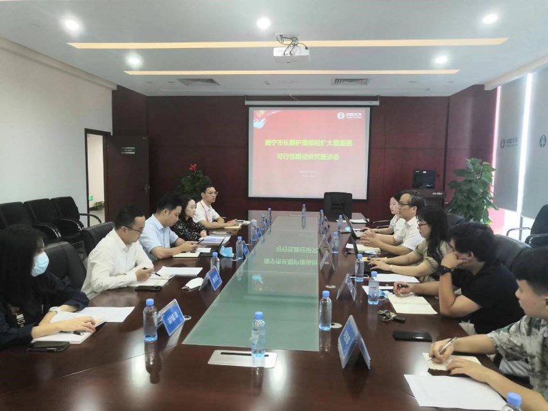 7月19日下午,王前强教授、黄李凤教授等一行人与泰康养老保险股份有限公司广西分公司、太平保险股份有限公司广西分公司、平安养老保险广西分公司三家长期护理保险承办机构召开座谈会。双方就承办机构在南宁市长期护理保险推行以来遇到的问题、阻力进行了探讨,王前强教授课题组充分听取了承办机构的意见和建议。