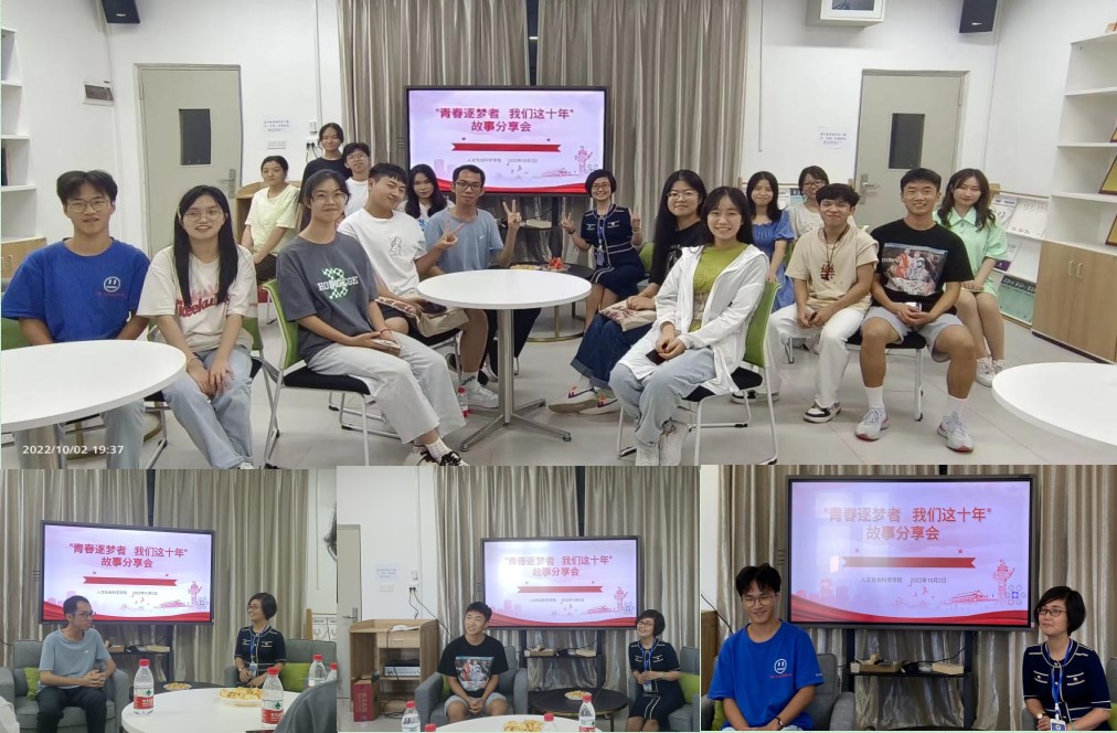 10月2日,郑茸副书记开展“青春逐梦者•我们这十年”故事分享会,师生通过发生在身边的故事回顾党的十八大以来小家与大国的变化,激发学子积蓄奋斗力量。10月4、5日,唐忠书记开展“书记有约——一个党员一面旗帜”“网络舆情安全”交流会,提升大学生党员党性修养、激励团员积极向党组织靠拢、引导学生营造清朗网络空间。