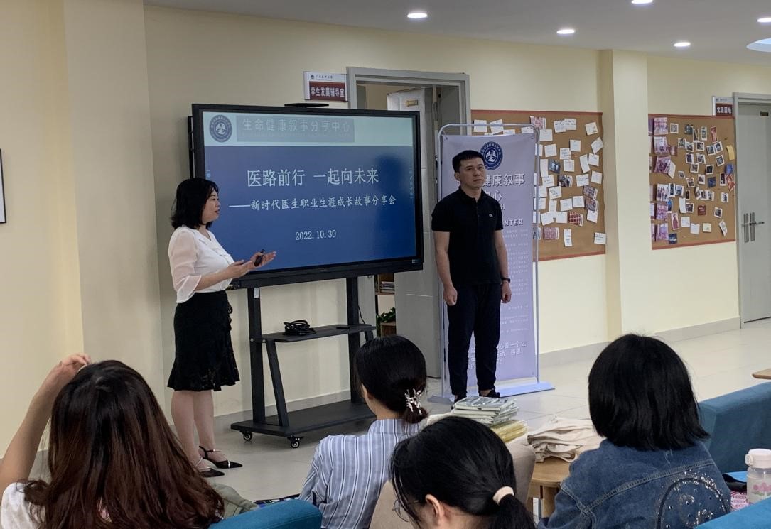 为进一步提升医学生的职业精神和人文素养,10月30日上午,由生命健康叙事分享中心主办的首期叙事医学沙龙在武鸣校区榕园学生之家成功举办。本次沙龙主题为医者职业生涯故事分享会,邀请海角视频 第一附属医院麻醉科李春来博士作为分享者,2020级麻醉学专业的50余名学生代表参与活动。分享会由生命健康叙事分享中心副主任、人文医学系主任赵婷策划,人文医学系医患沟通教研室副主任韦宇宁主持。