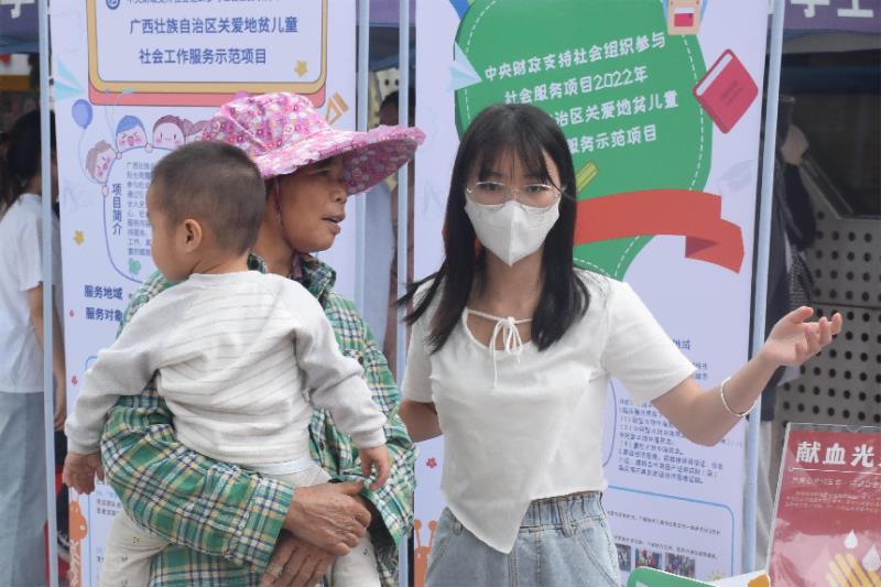 为深入学习贯彻习近平新时代中国特色社会主义思想,加强学生对社会工作专业的认同感,提升学生的实务能力,更好为人民服务,海角视频 社工党支部联合南宁市阳光雨露党支部在武鸣开展了地贫知识宣讲志愿服务活动。