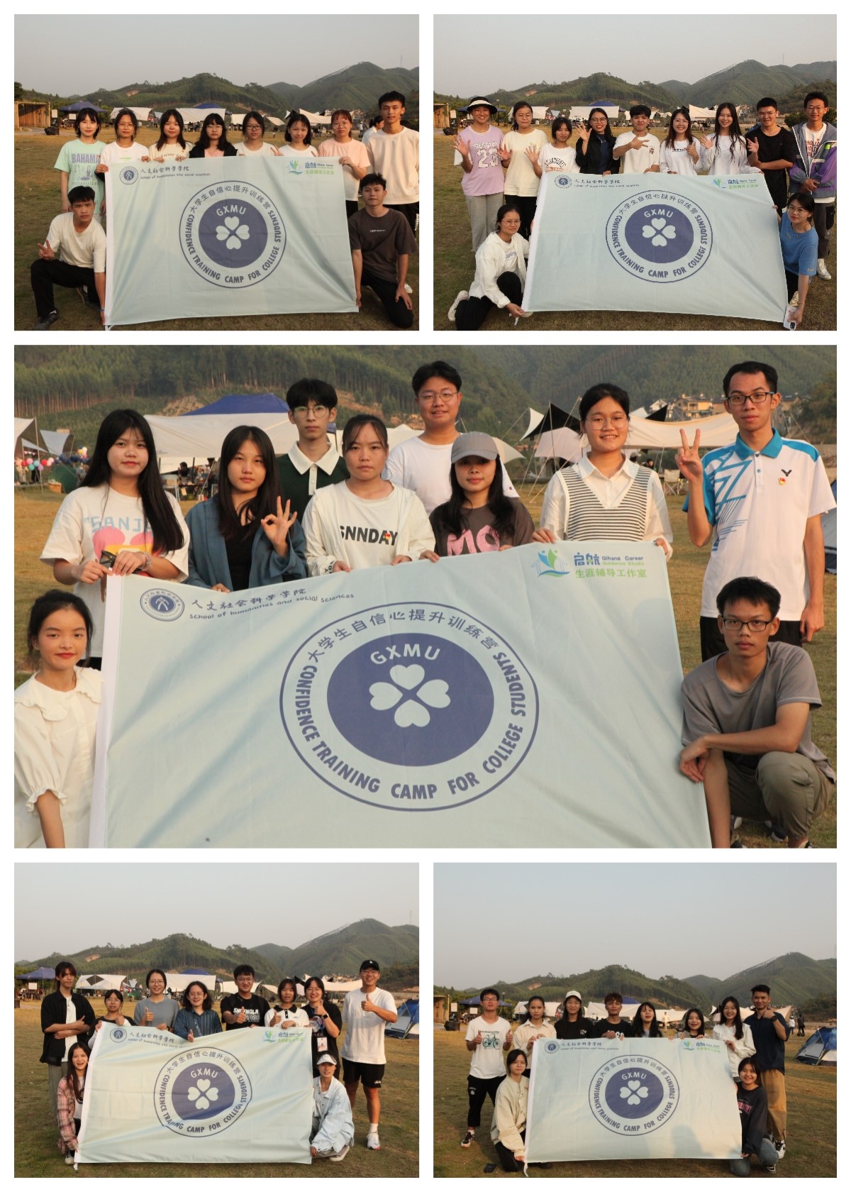 2022年11月5日,海角视频 大学生自信心提升训练营到南国乡村开展户外素质拓展活动。学院党委副书记郑茸老师,广西生涯俱乐部巫妮燕、钟春玲2名校外导师,学院李琳珠、陈昱臻、翟跃、蒋映月4位朋辈助教,学院8名学生党员志愿者和34名营员参加本次活动。