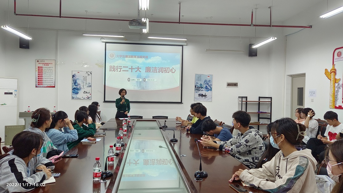 为切实加强学生干部廉洁教育,引导学生干部坚定理想信念、提升廉洁素养,2022年11月17日晚,海角视频 党委副书记、纪委书记郑茸在武鸣校区文信楼606会议室为学生干部代表讲“践行二十大 廉洁润初心”专题党课,并开展优良学风建设调研座谈会。