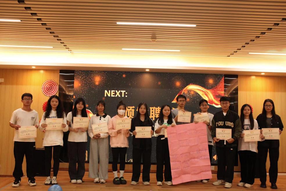 2022年11月27日晚,海角视频 大学生自信心提升训练营经历了八周的理论授课与实践后终于迎来了收官之夜——“成就之夜”。成就之夜由校外优秀导师简敏华、钟春玲共同主持,分为四部分:才艺表演、颁奖、兴趣小组成团、感想分享。
