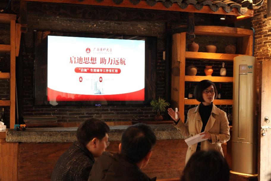 会议伊始,闵晓阳对工作室建设作指导讲话,她指出,“启航”生涯辅导工作室成功入选第一批广西高校高水平辅导员工作室培育建设项目。在未来建设过程中,工作室要做好规划、开拓创新、扎扎实实、做出特色,在生涯规划与辅导和辅导员专业化提升等方面起到榜样带头作用,努力打造在全区乃至全国高校具有示范引领作用的辅导员工作室。