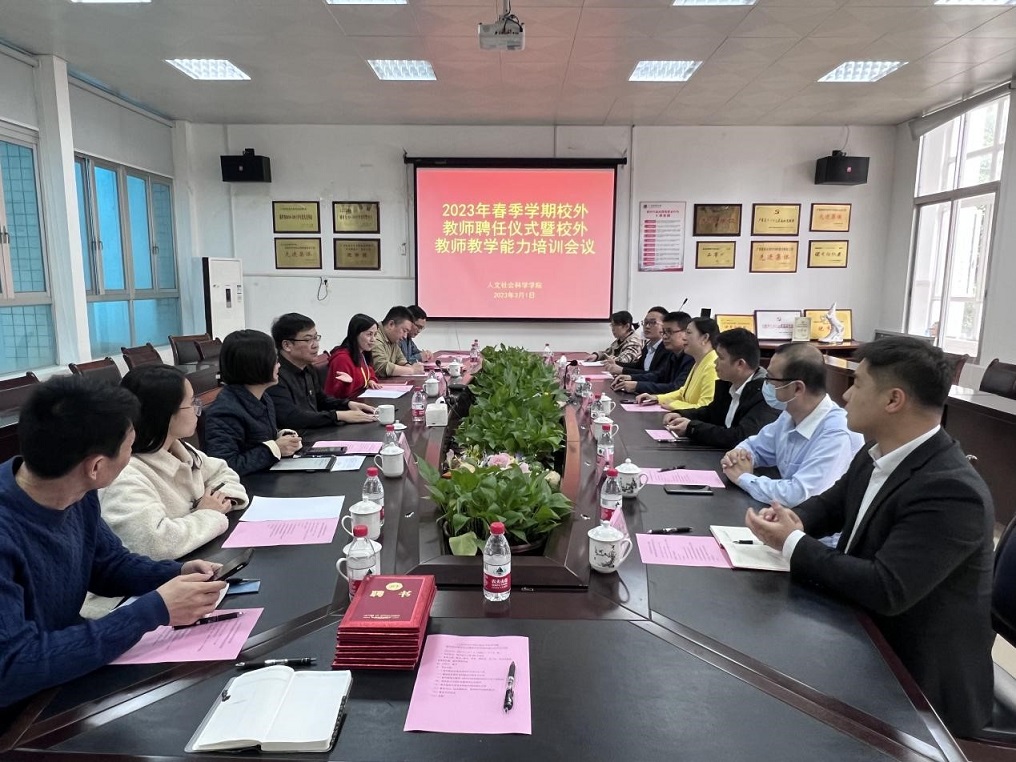 为加强外聘教师管理工作、提高外聘教师教学质量、保证新学期教学工作的顺利开展,2023年3月1日下午,海角视频 组织召开了2022-2023年下学期外聘教师培训会暨聘任仪式,会议由学院副院长陈宇主持。学院党委书记唐忠、副书记郑茸、教研科、各系主任、教师代表及校外教师代表参加了会议。