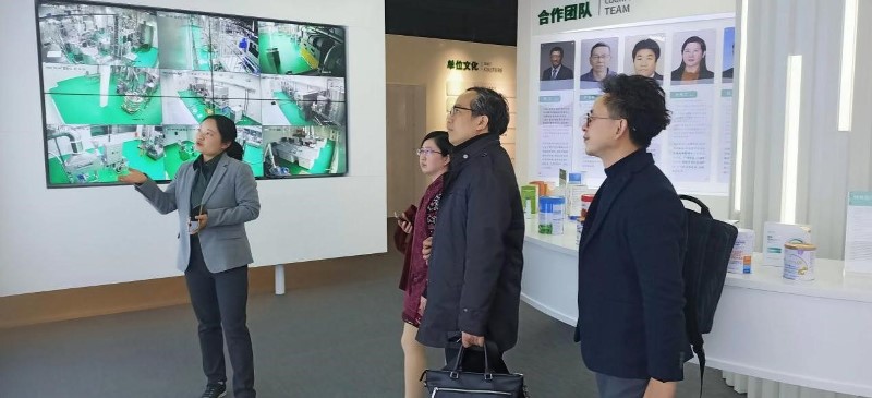 下午课题组前往无锡市食品安全检验检测中心,中心研发科科长马雪莹和检验检测科科长黄丽俊接待了课题组一行人。在食检中心的展览长廊里,马雪莹科长介绍中心的概况,无锡市食品安全检验检测中心主要承担食品及相关产品的监督检验、风险监测检验、委托检验,以及检验检测结果的数据分析和风险预警工作。以无锡食品安全检测中心为依托建立的国家市场监管技术创新中心(特殊食品)围绕“技术研究、成果转化、企业服务”三大功能,建成研发测试平台和中试平台,拥有各类测试设备500余台套,建设理化、微生物、细胞、动物和临床评价等差异化的五大能力;建有“液体、粉体和挤压”中试产线3条,“酶解、发酵”小试产线2条,研发测试设备、中试设备价值约1.2亿元。中心以营养健康产业一站式解决方案提供者为目标,与江南大学附属医院等单位协议共建特殊食品相关联合研究实验室,推进构建技术服务生态圈。为纽迪希亚等企业提供分析测试、工艺优化、原料研发和临床评价等服务,助力招引科露宝等创新企业落户,推动打造特殊食品和营养健康产业高地。