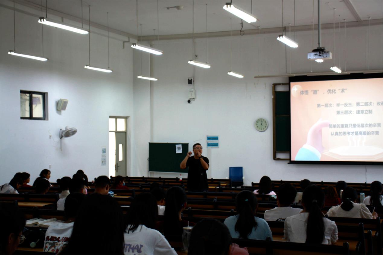 为引导学生树立正确职业观,提前谋划落实学生就业工作,9月9日下午,海角视频 在武鸣校区举办了大学生职业生涯规划主题活动。本次活动邀请到祥生建设集团综合管理中心总经理李腾,以“职场中的‘道’与‘术’——职业规划和职业选择”为题作了精彩讲演。活动由社会学与社会工作系、“启航”生涯辅导工作室联合承办,讲座吸引了来自人文、全科、外语等学院的150余名同学参与。