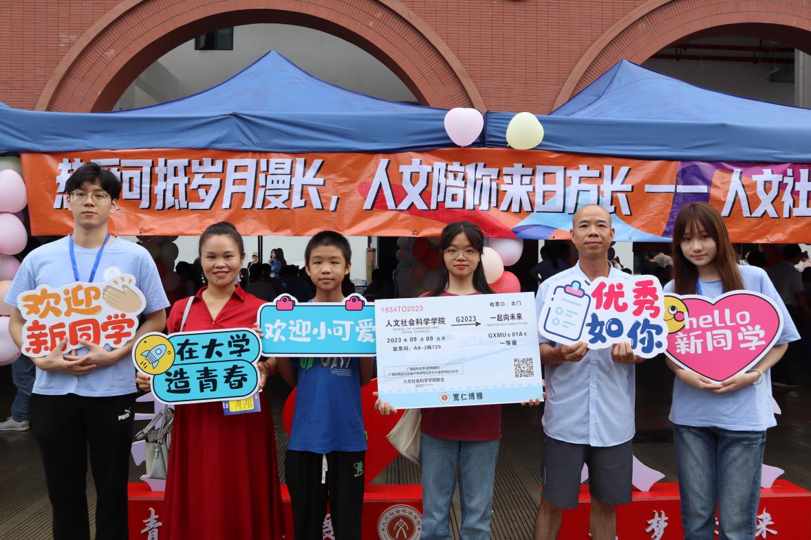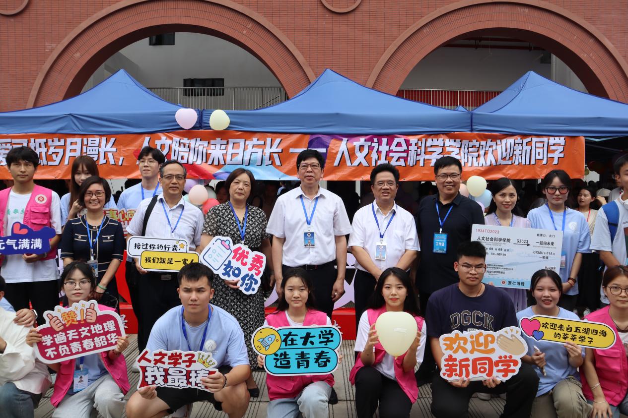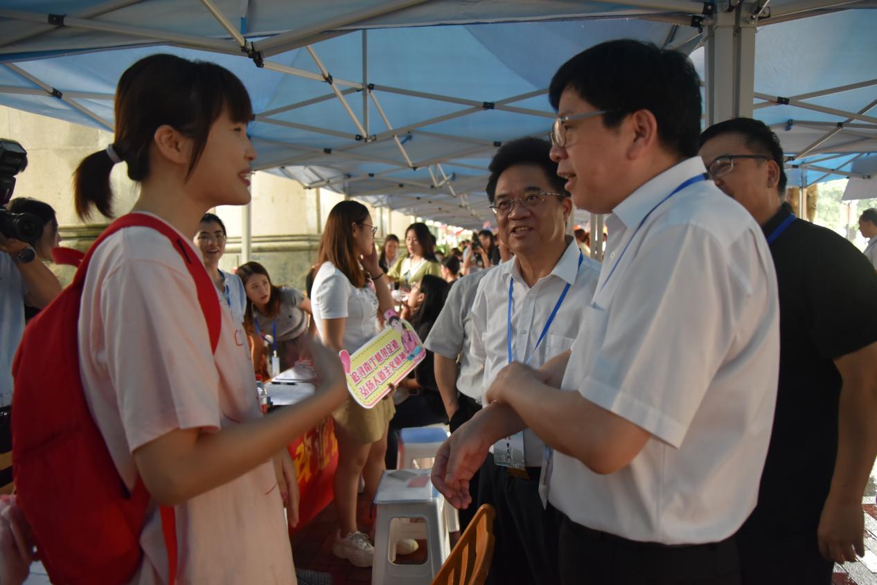 随着报道工作的持续进行,学校领导、相关职能部门负责人在学院领导的陪同下,来到人文学院的迎新报到点,与现场工作人员了解新生报到注册情况,慰问现场工作人员和志愿者,并与同学们合影。
