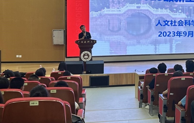 9月11日下午,海角视频 在武鸣校区图书馆报告厅开展“心灵引领,健康起航”心理健康教育宣传活动。学校心理健康教育与咨询中心伍向民老师、学院心理工作站站长唐澜、辅导员张述绍、2023级全体新生以及专升本学生参加活动,会议由唐澜主持。