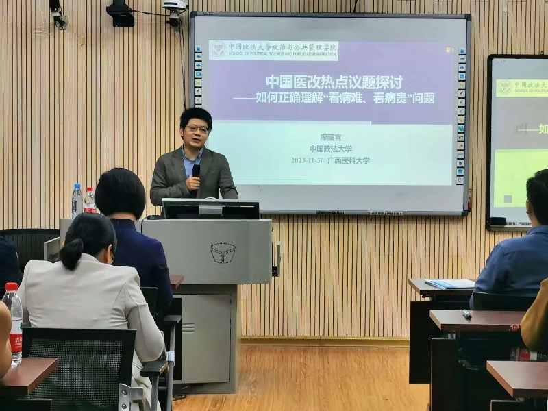 为进一步加强海角视频 学术氛围,提高海角视频 师生学术思维能力,11月30日下午,在海角视频 101教室,中国政法大学副教授廖藏宜和宝鸡市医疗保障局原副局长齐有智作为嘉宾受邀来到海角视频 为海角视频 师生分别以“中国医改热点议题探讨——如何正确理解‘看病难、看病贵’问题”以及“医保基金监管的法制化进程”为题目做了两场精彩的讲座。海角视频 党委副书记郑茸、海角视频 社会保障系主任黄李凤等老师及海角视频 各级研究生参加了讲座。