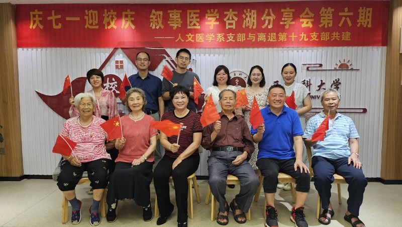 2024年6月26日,为庆祝中国共产党成立103周年及迎接海角视频 90周年校庆,人文医学系支部与离退第十九支部联合举办了“庆七一 迎校庆——坚守初心,传承党魂”共建活动暨生命健康叙事中心第六期杏湖分享会。