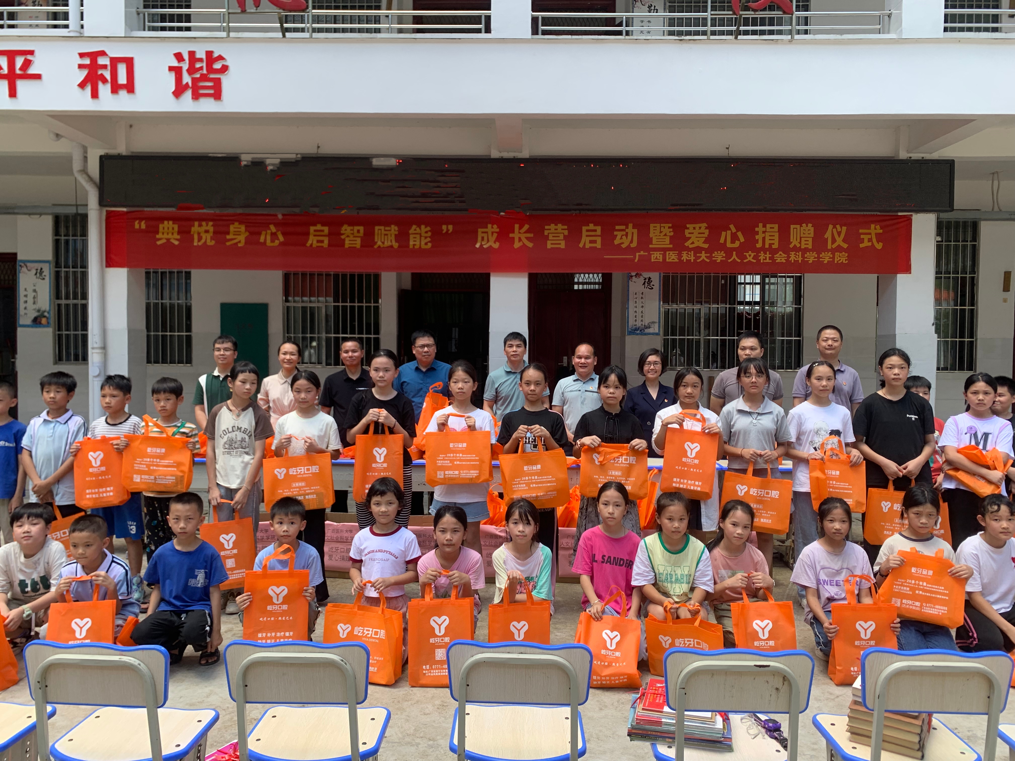 爱心捐赠,把温暖送进校园里。7月8日上午,服务团在马山县里当乡中心小学隆重举行“典悦身心,启智赋能”暑期成长营开营仪式暨捐赠仪式。仪式上,里当乡政府党委副书记韦思思致辞,唐忠书记与里当乡中心小学蓝庆广校长发表了讲话,并向小学生进行了图书和生活物资捐赠。