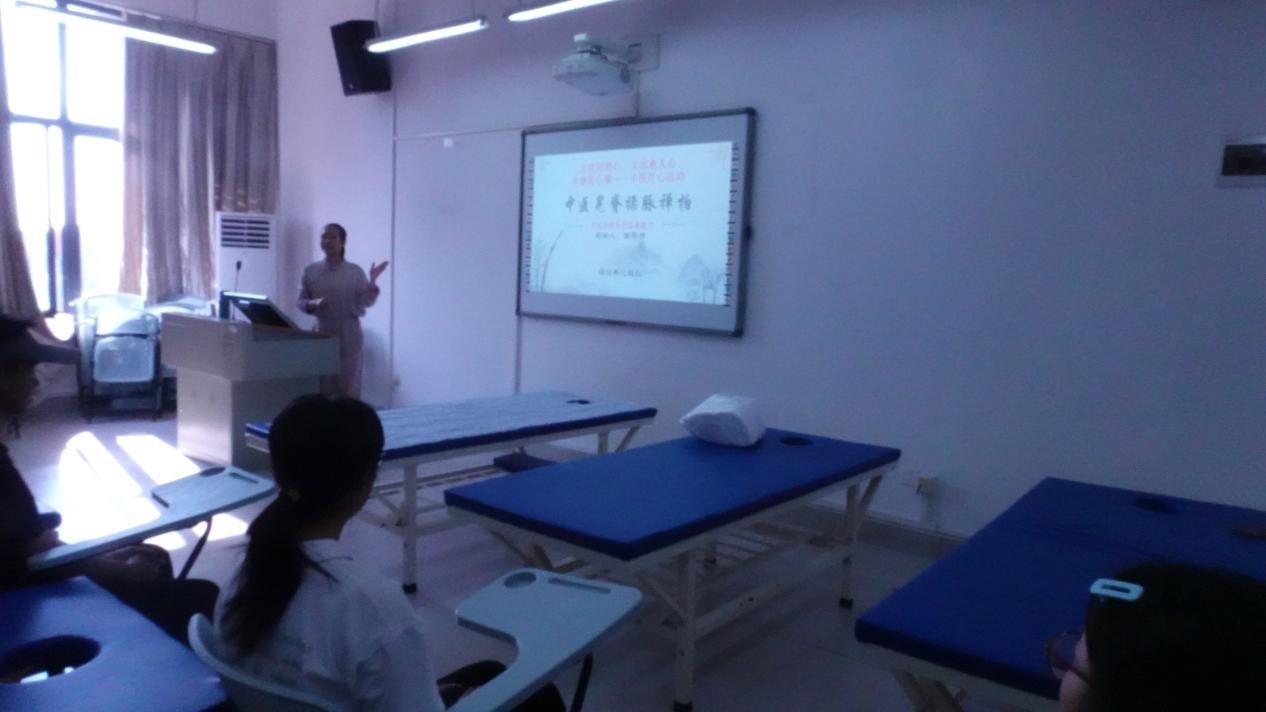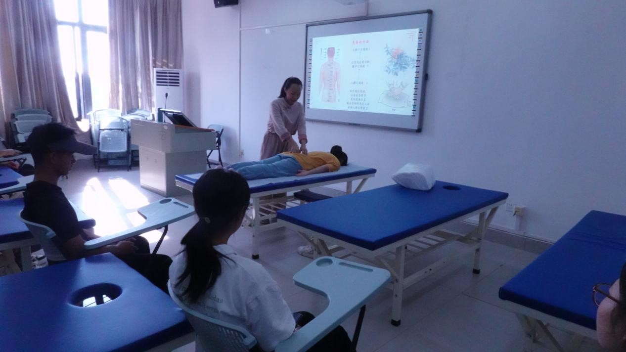 初秋的阳光,和煦温暖。11月2日周日的惬意午后,蒲公英心理社在A8文信楼的海角视频 推拿实验室举办“治外而疗内,体健而心康”中医以身疗心活动。通过中医的晃脊、揉脉、禅拍的自然疗法,疏通经络及其对应的负面情绪,达到”体健而心康“的效果。活动由社团指导老师李诗婷主持。