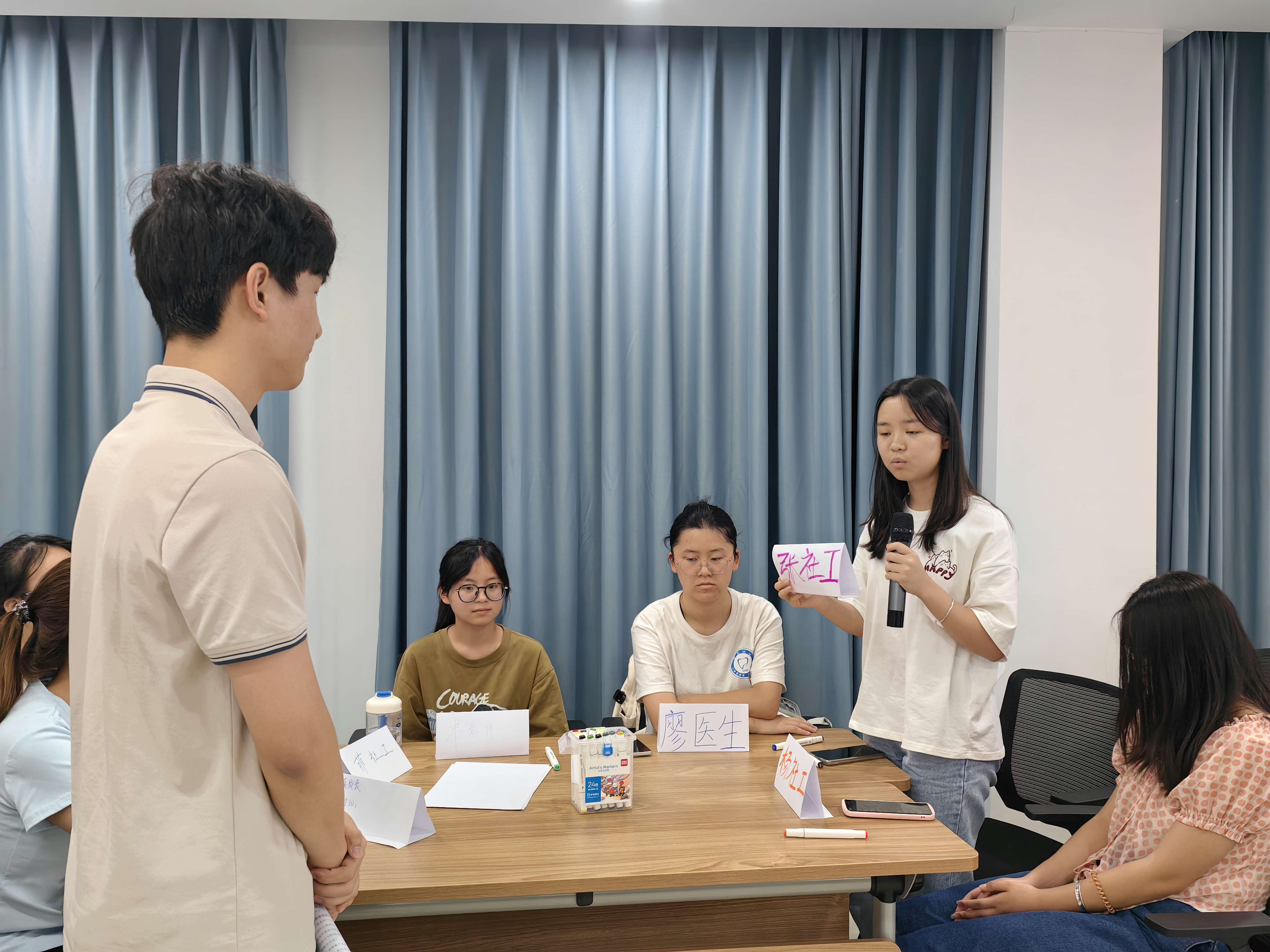 活动现场,主持人以多元互动环节为引,层层深入剖析劳动精神内涵,引导同学们感悟劳动精神对大学生成长的深远意义。在 “劳动精神与职业规划‘双向奔赴’” 环节,“我的身份牌” 成为同学们思维碰撞的火花。大家在卡纸上郑重写下理想岗位,提炼与之契合的劳动精神关键词,并通过小组交流分享,将个人对职业与劳动精神的思考汇聚成群体智慧,深刻领悟劳动精神与职业规划融合发展的价值所在。